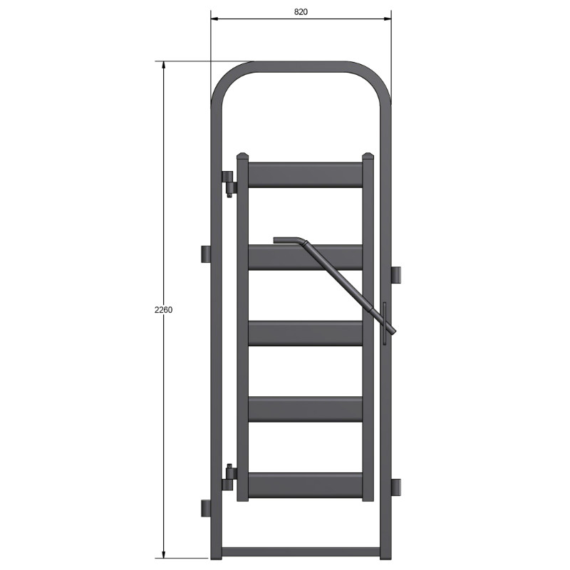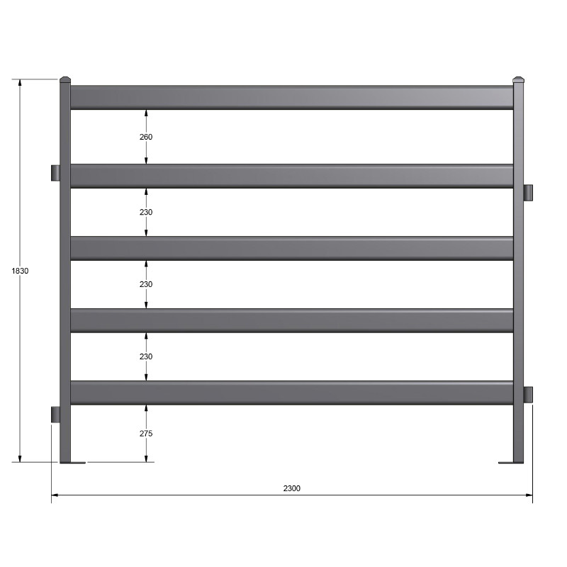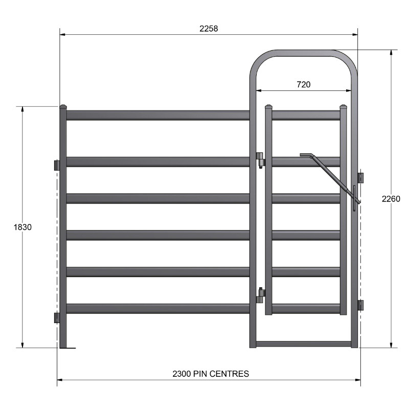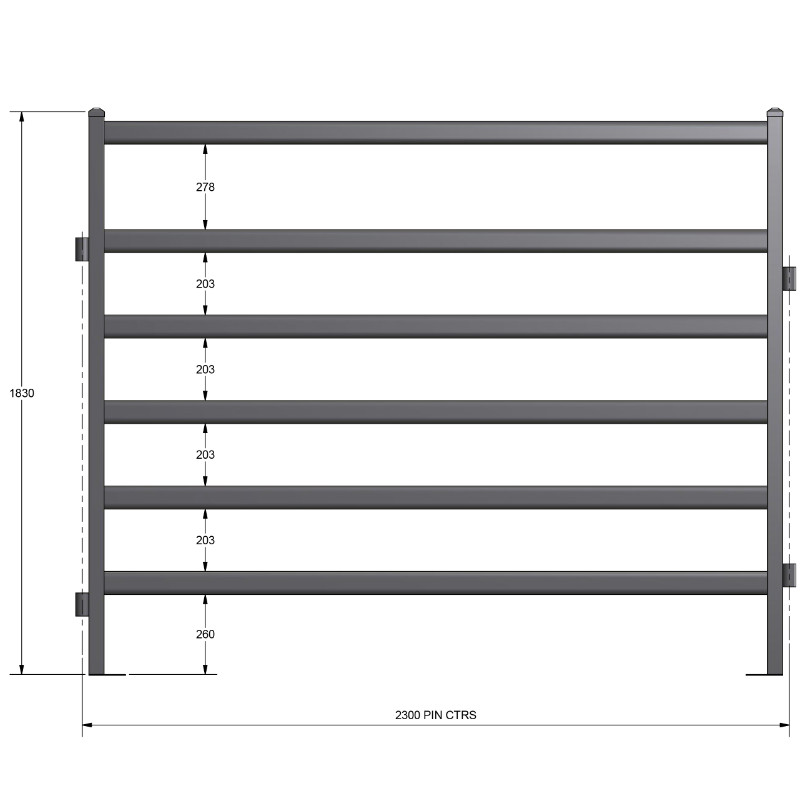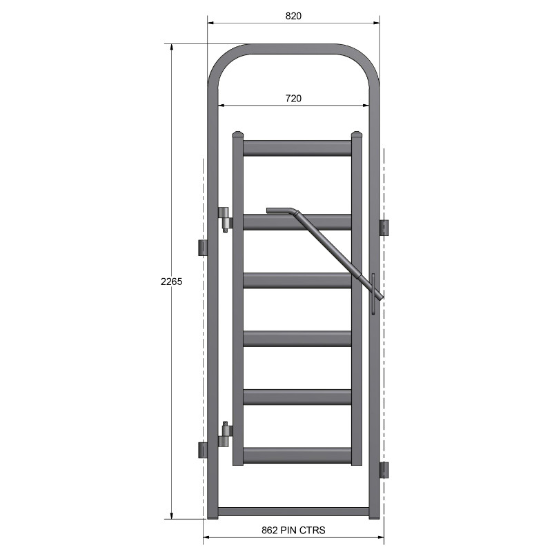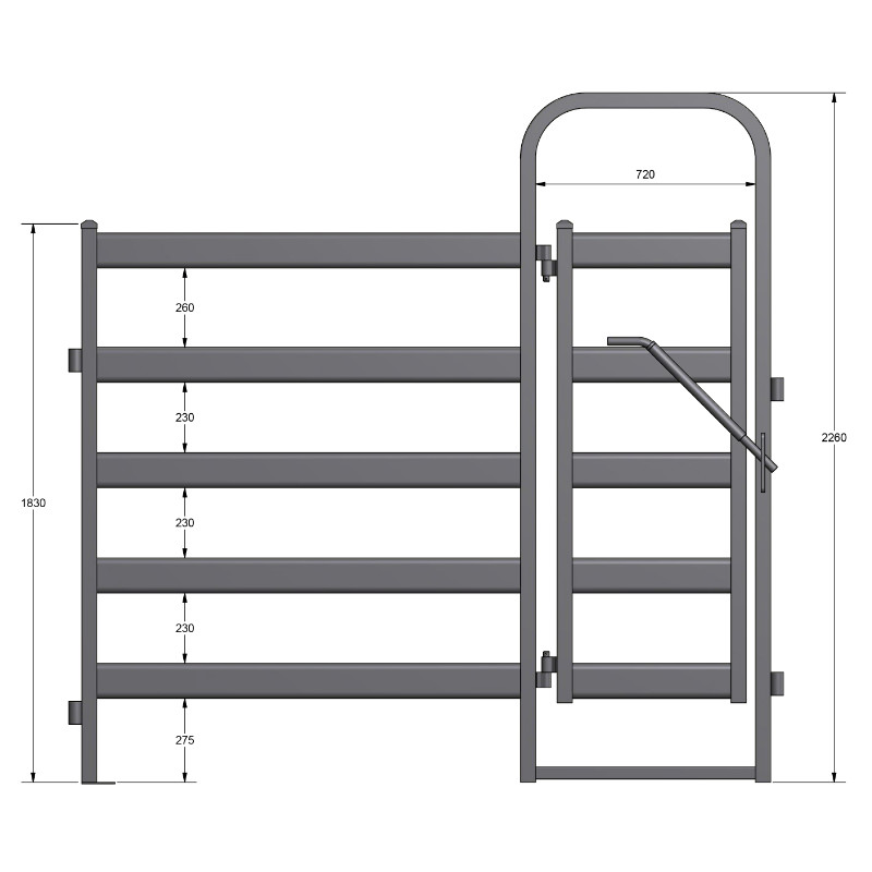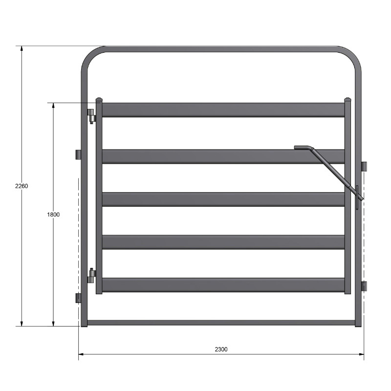 Forcing gates swing in one direction 180°, useful for guiding cattle flow in certain yard layouts.