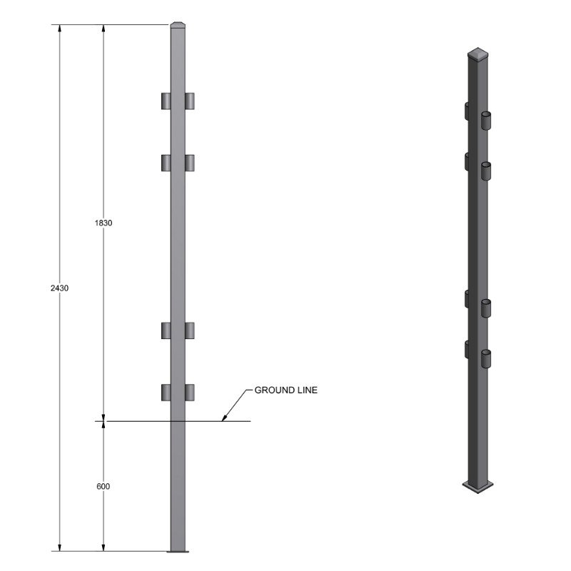 Portable posts are ~1600 mm high for flexibility. Permanent posts have a 1830 mm height plus a 600 mm underground leg for solid installation.